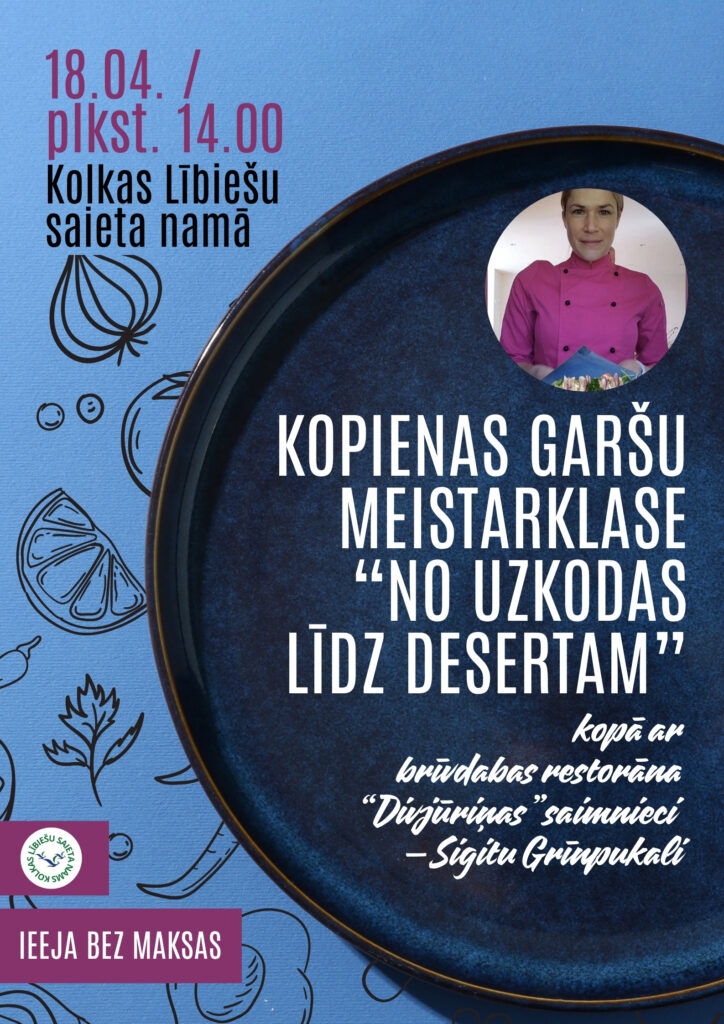 Kopā izzināsim garšu ceļojumu, gatavojot visu – sākot no gardām uzkodām, kas pārsteigs viesus, līdz pat īpašiem desertam. Brīvdabas restorāna “Divjūriņas” saimniece Sigita Grīnpukale dalīsies savā pieredzē un noslēpumos, kā radīt neaizmirstamas garšas no vietējiem produktiem. Ieeja bez maksas.